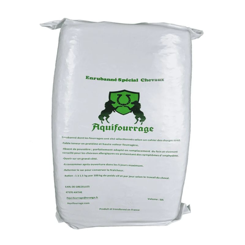 - 75 à 85 % de matière sèche environ, à ne pas confondre avec de l’enrubanné pour bovin qui peut être plus humide et beaucoup plus riches en protéines.